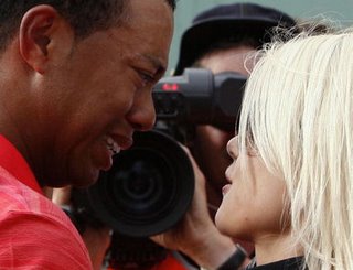 A little privacy, please? I guess the price you pay for being the best golfer in the world and earning all the money that goes with it is having your intimate moments in public. But could that camera guy get any closer? Photo from Golfweb.com.